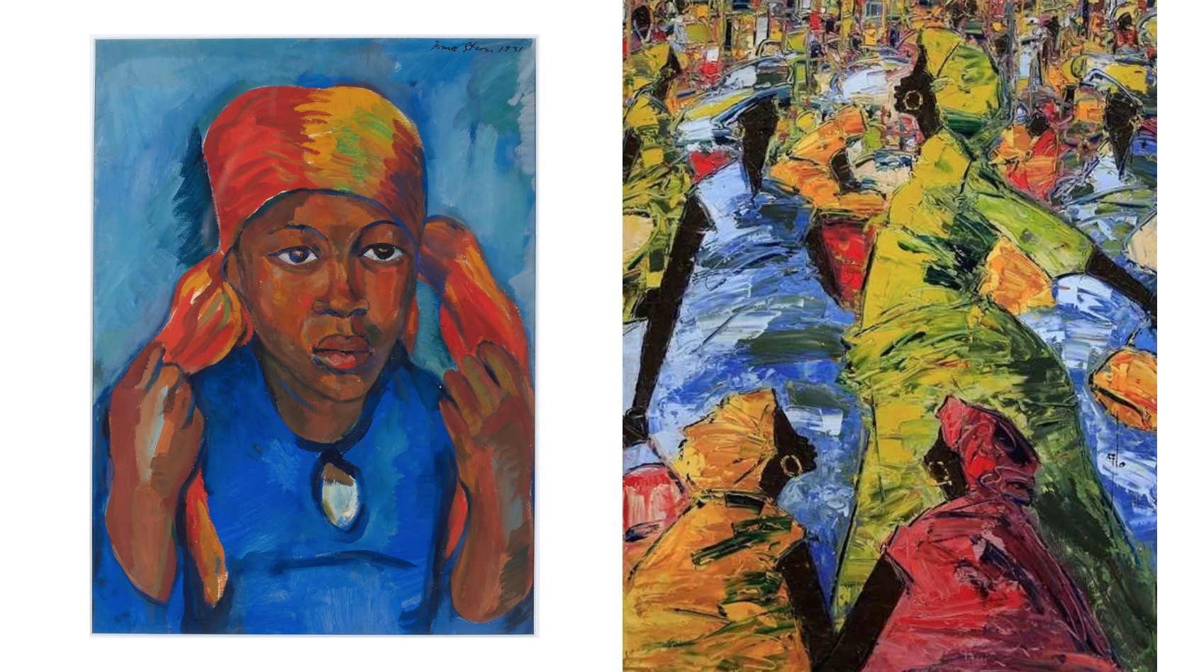 Right: Ablade Glover (Ghana 1934-), Market Queens, 2016