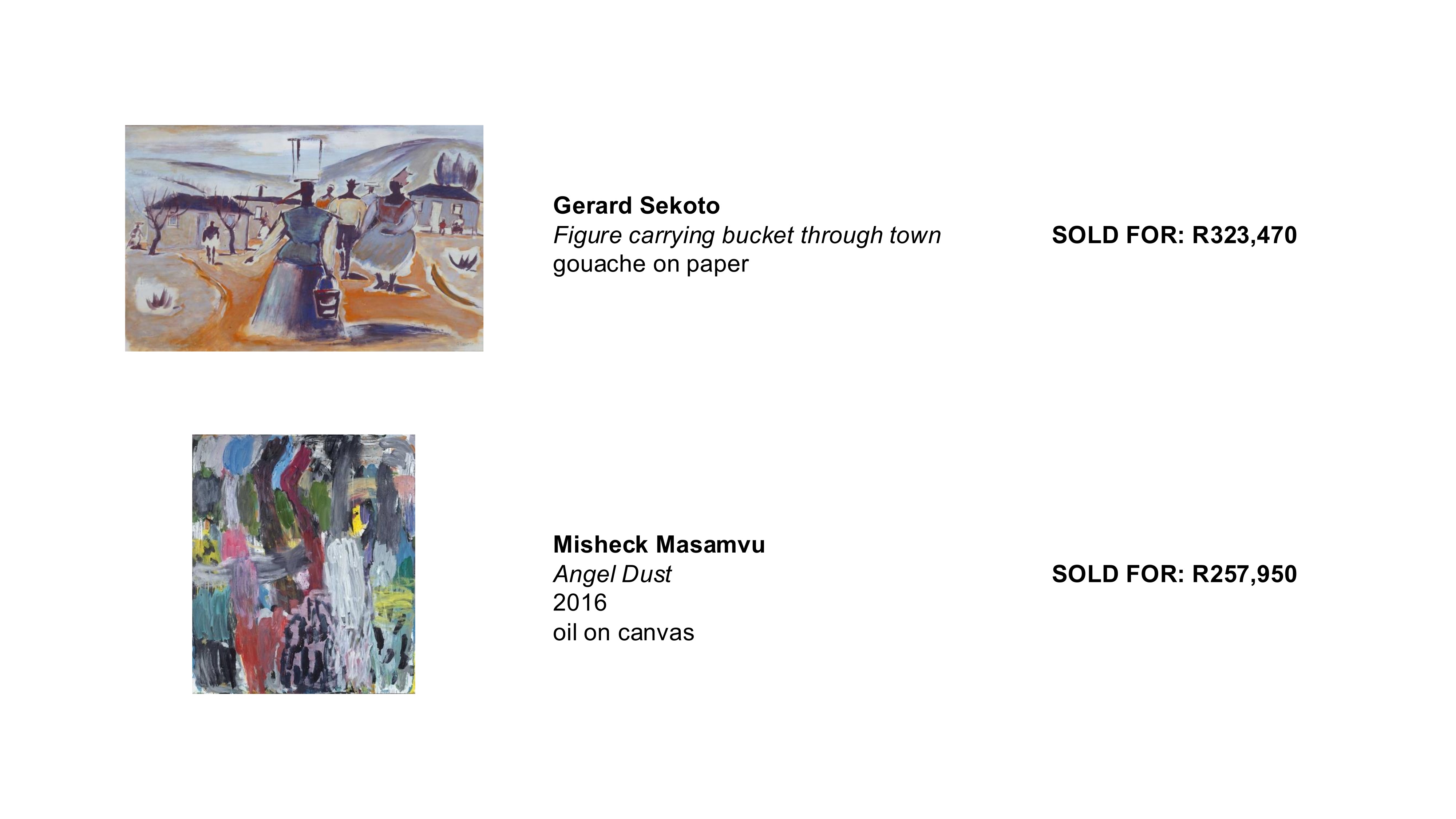 The auctions presented several specially curated collections and featured 105 carefully selected artworks by leading South African, African and international artists from the modern and contemporary periods.
